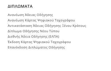 Η Επιχείρηση δραστηριοποιείται στον κλάδο των αυτοκινητιστικών διεκπεραιώσεων καλύπτοντας τις ανάγκες των πελατών σε θέματα σχετικά με τις εκδόσεις αδειών κυκλοφορίας , μεταβιβάσεων Ι.Χ. και Φ.Ι.Χ., αναθεωρήσεις διπλωμάτων , τρέιλερ κλπ.Η Επιχείρηση σας παρέχει ολοκληρωμένες υπηρεσίες.